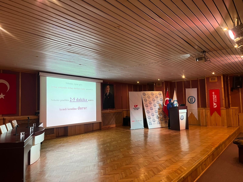 Seminerde epilepsinin toplumda sık görülen nörolojik hastalıklardan biri olduğu vurgulanarak bu konuda doğru bilgiye sahip olmanın önemi üzerinde duruldu. Katılımcılara nöbet sırasında uygulanması gereken doğru yaklaşımlar ve hastanın güvenliğinin nasıl sağlanacağına ilişkin temel bilgiler aktarıldı.